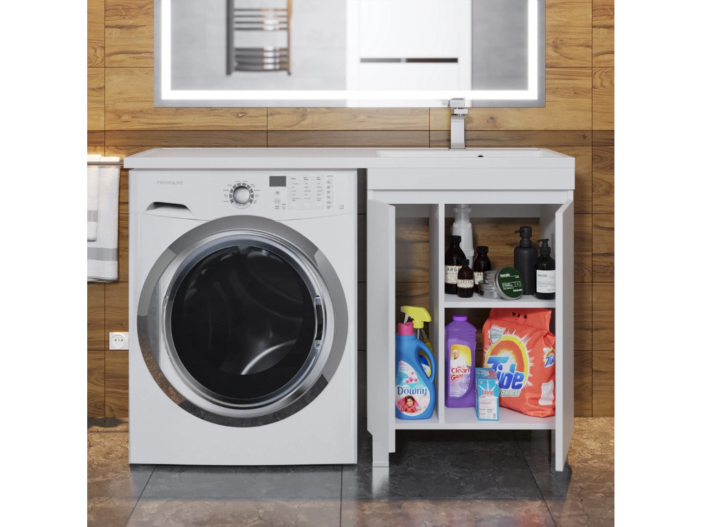 - Тумба с раковиной Uperwood Magenta 60-120 см напольная белая с дверцами правая