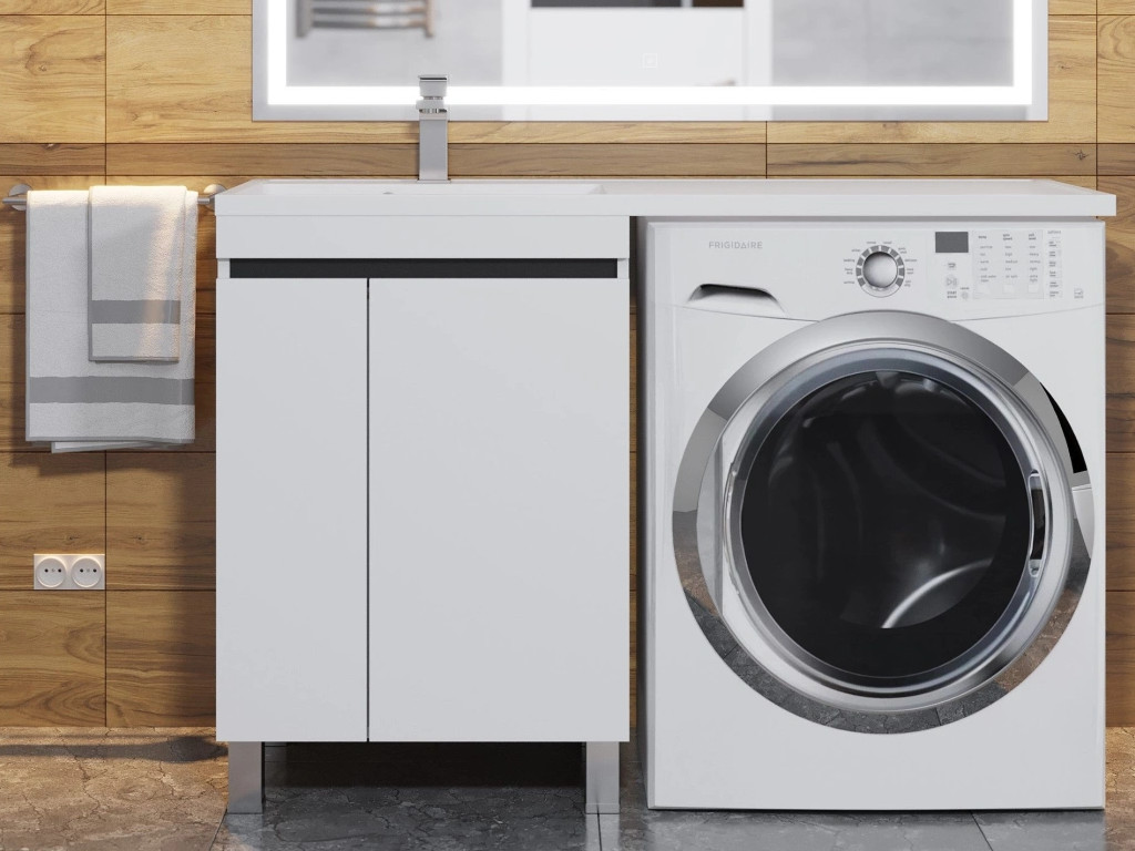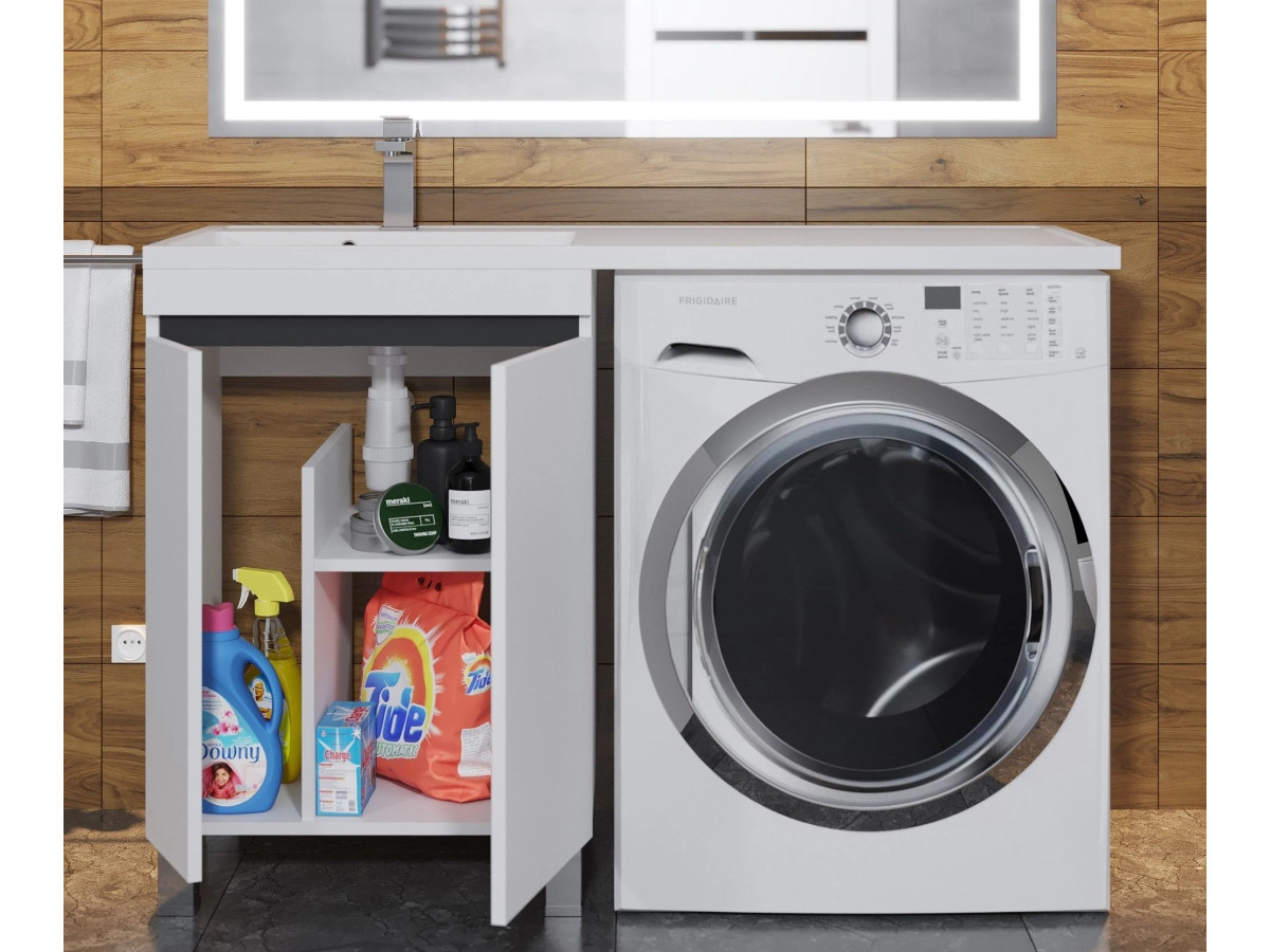 - Тумба с раковиной Uperwood Magenta 60-120 см напольная белая/графит с дверцами левая