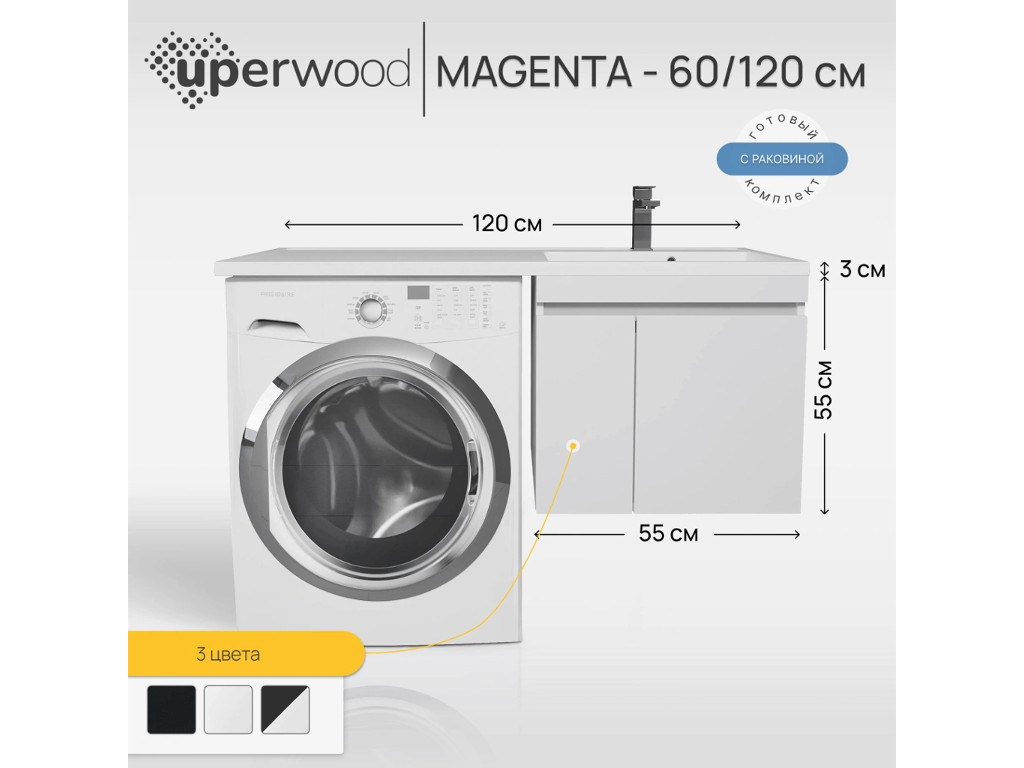 - Тумба с раковиной Uperwood Magenta 60-120 см подвесная белая с дверцами правая