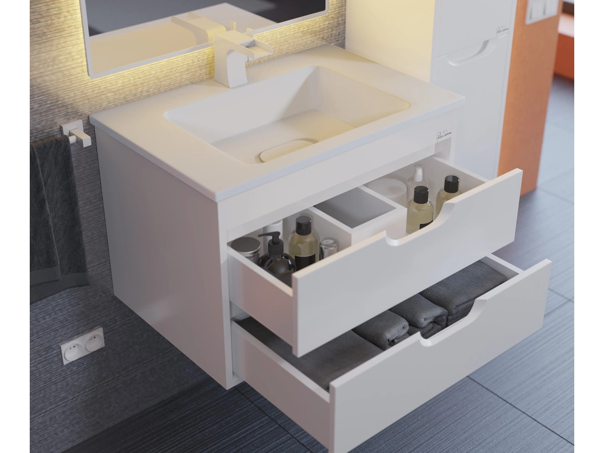 - Тумба с раковиной Uperwood Modul матовая белая 65 см