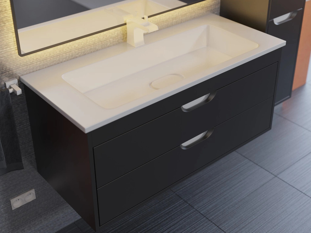- Тумба с раковиной Uperwood Modul матовая черная 100 см