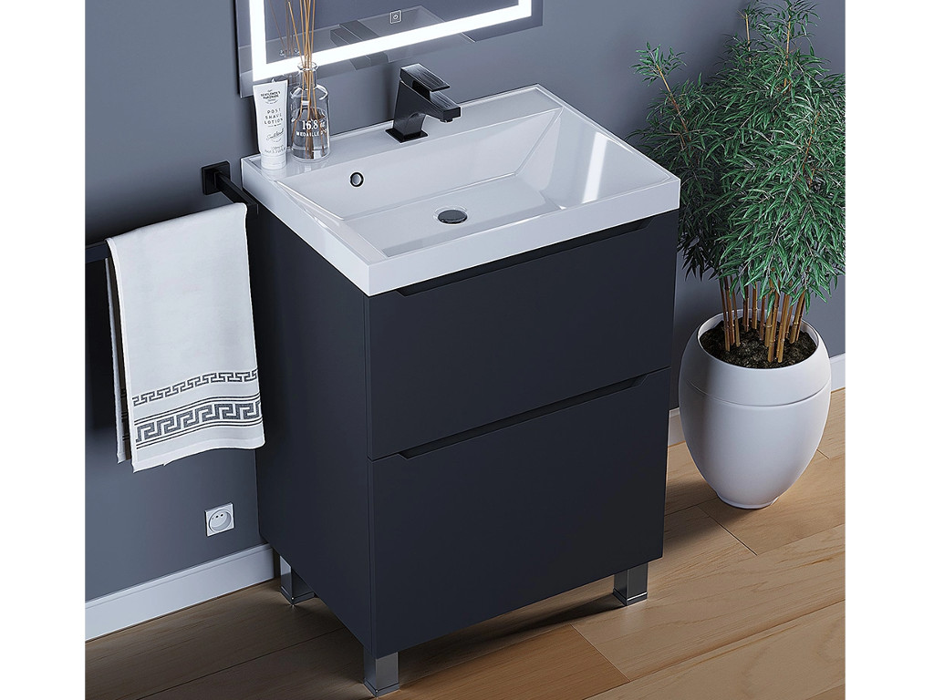 - Тумба с раковиной Uperwood Tanos 2 ящика напольная 60 см черная