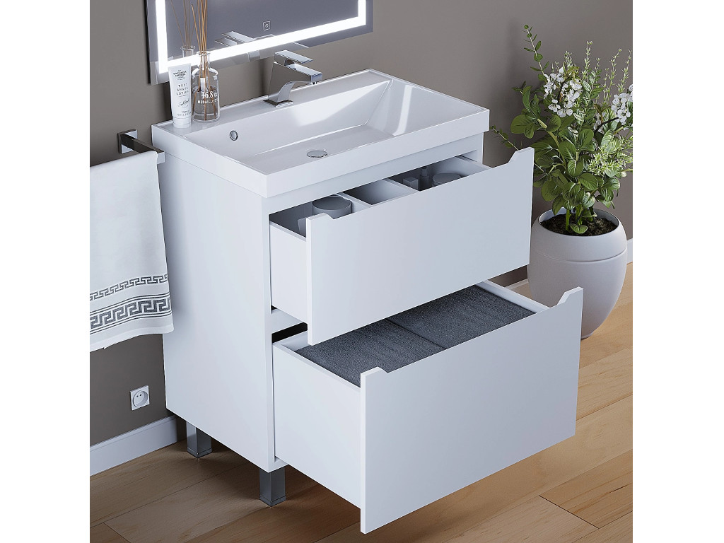 - Тумба с раковиной Uperwood Tanos 2 ящика напольная 70 см белая