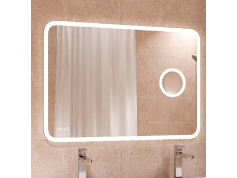 LED подсветка, сенсорное включение, антизапотевание, часы, косметическое зеркало