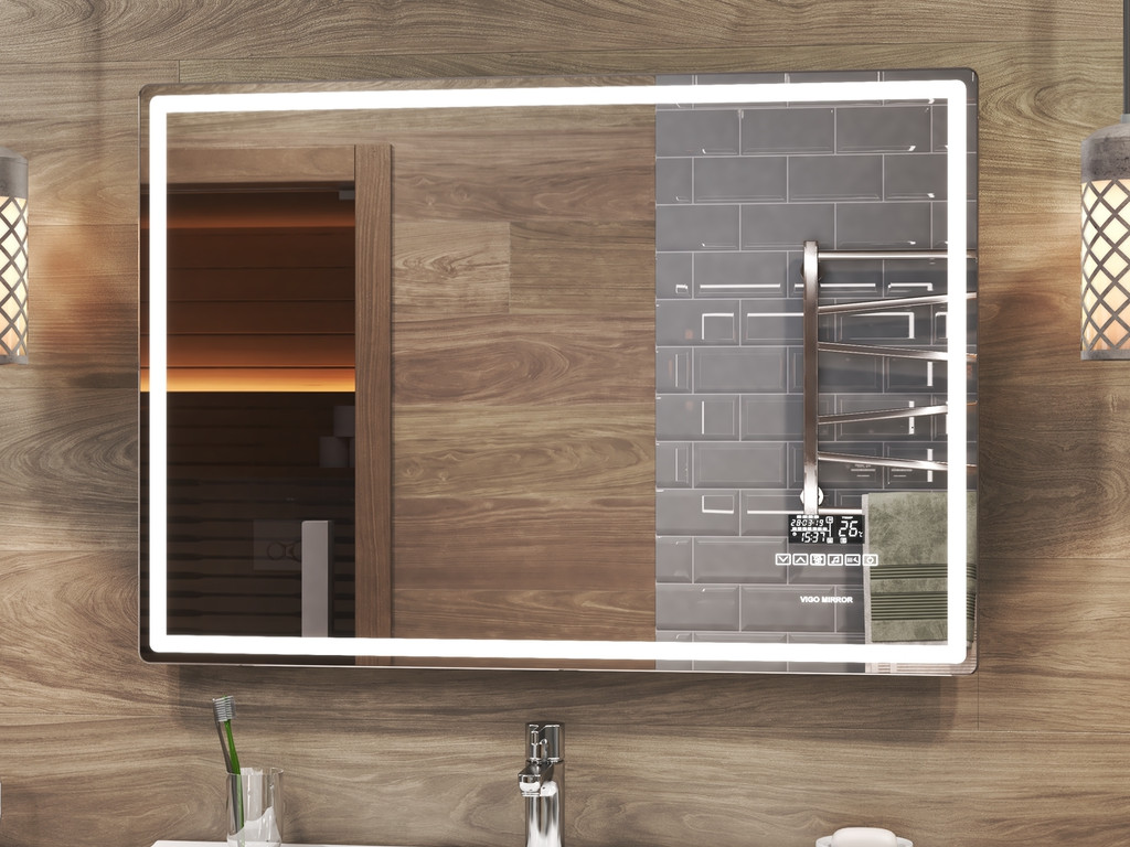 Оснащение: LED подсветка по периметру, сенсорное управление, часы, дата; функция