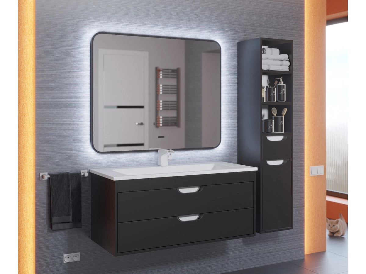 - Зеркало Uperwood Modul черное холодная подсветка 60х80 см