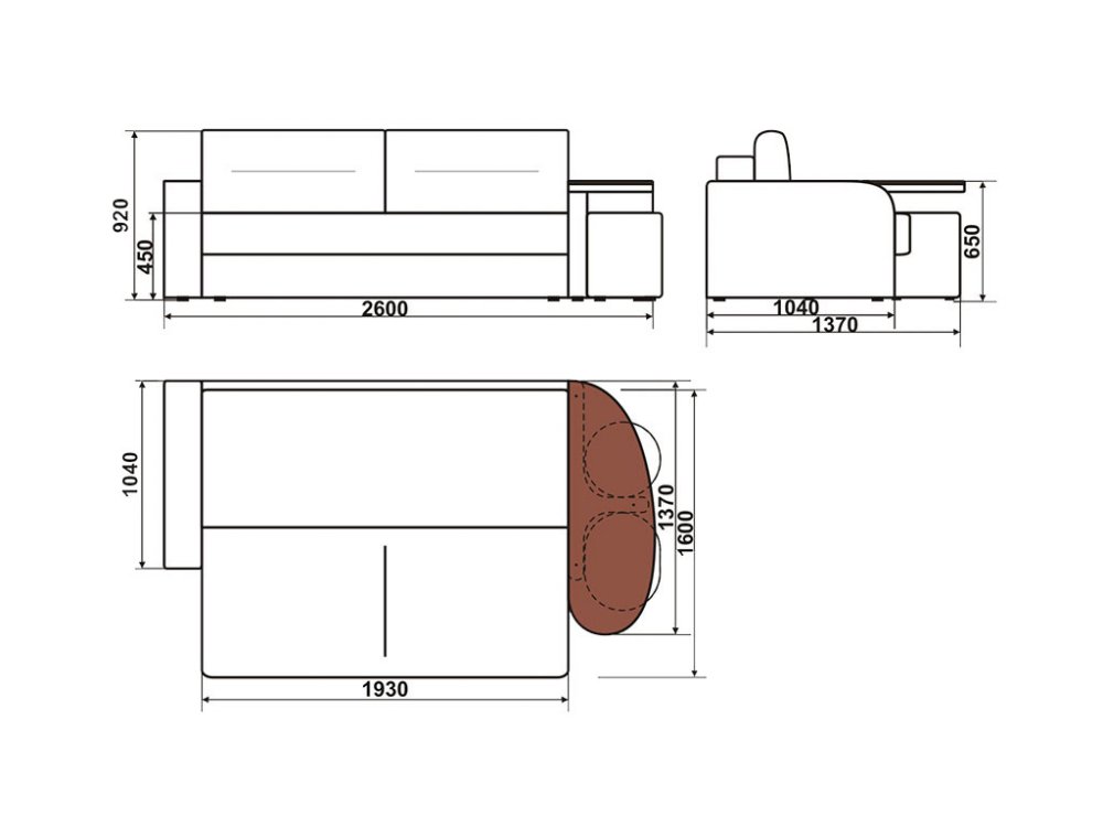 Спальное место: 1930х1600 мм