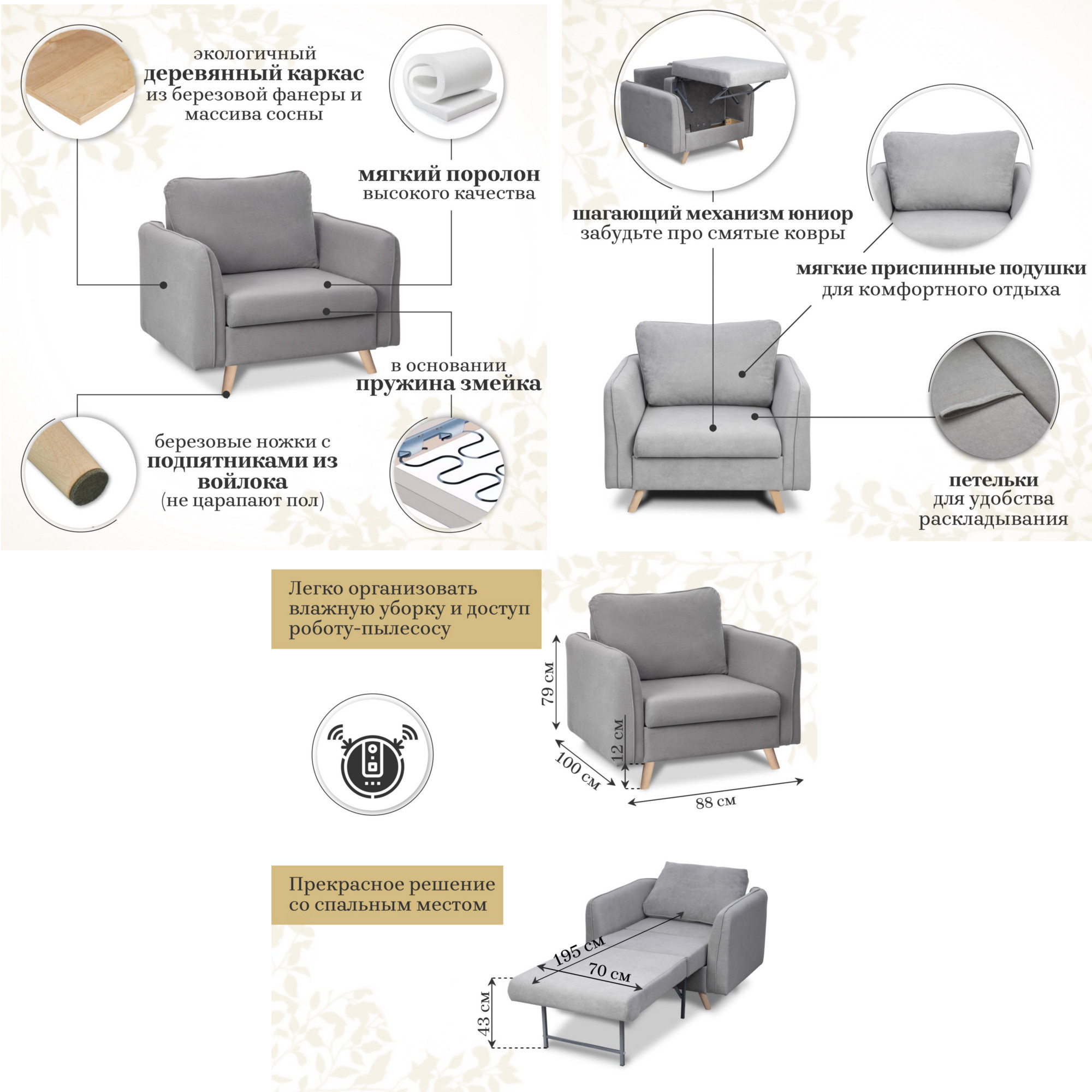 - Спальное место: 700х1950 мм
