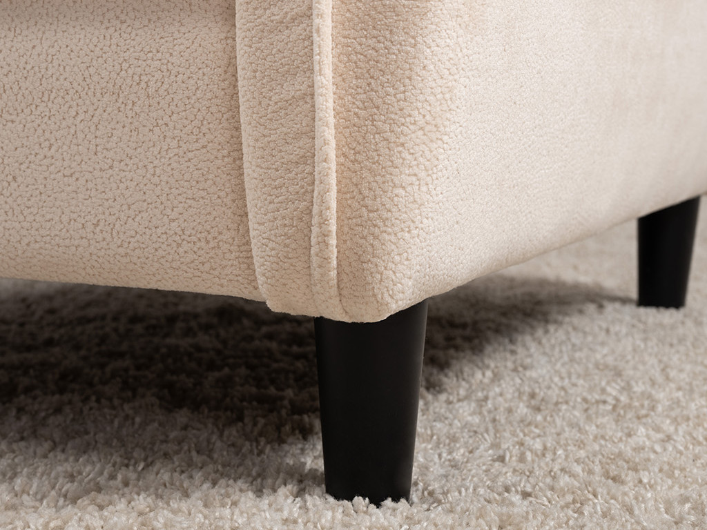 Кресло с приспинной подушкой трапецивидной формы на молнии, по трем сторонам которой проложена отделочная строчка на 1,2 см. По контуру боковин проложен декоративный кант на 1,2 см основной ткани. Кант проходит по центру передней части боковины, а по внутренней верхней части сборка.