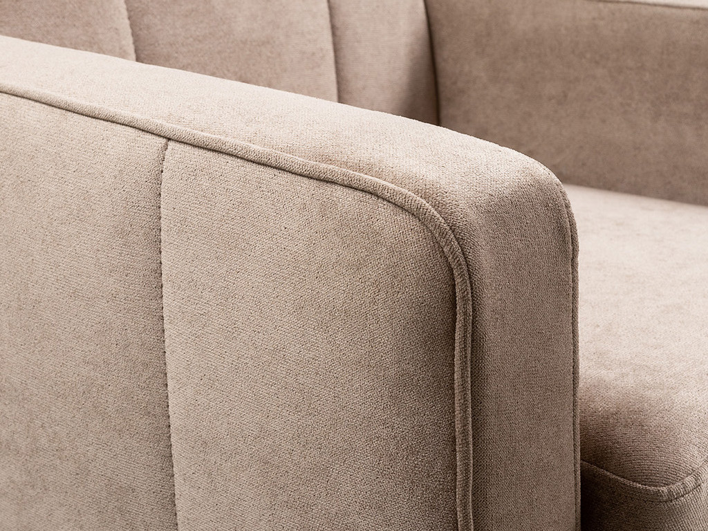 Декор: Стежка на внутренней спинке и боковине. Отделочная строчка по сидению. Декоративyый кант в тон на подлокотниках и спинке. Изюминку коллекции придают металлические пуговицы на спинке.