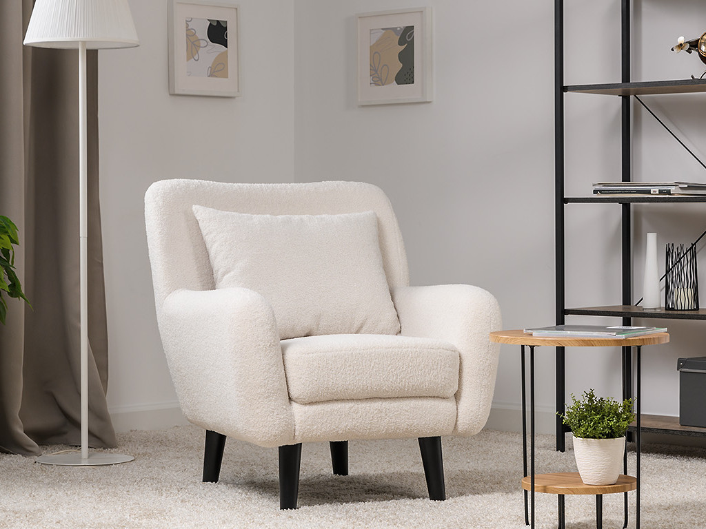 Декор: Ткань букле делает кресло особенно уютным и мягким. Приспинная подушка в цвете кресла