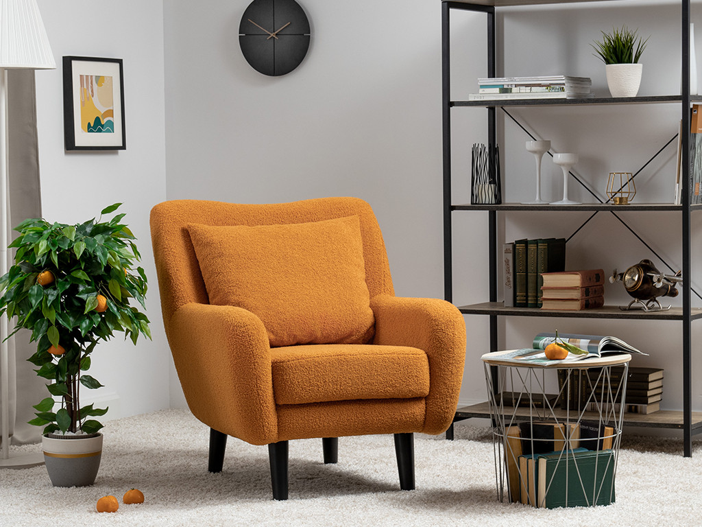 Декор: Ткань букле делает кресло особенно уютным и мягким. Приспинная подушка в цвете кресла
