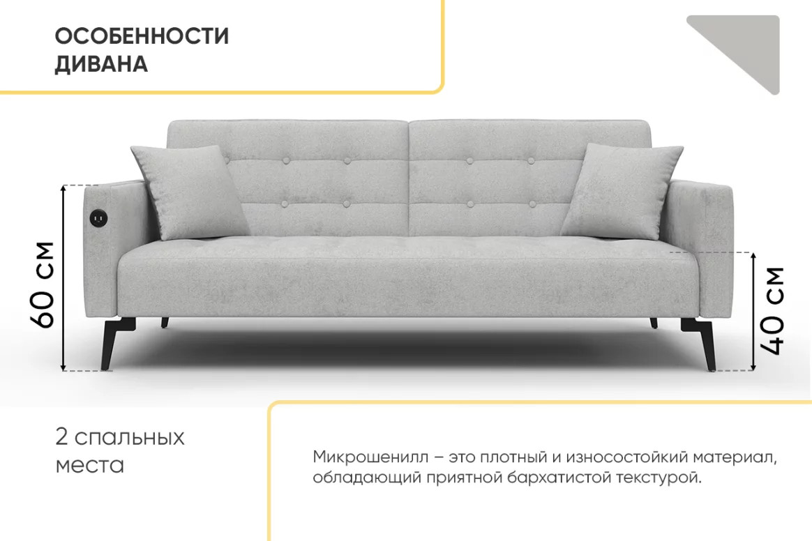 - Диван Аллаки с USB розеткой Серый Tailor 7