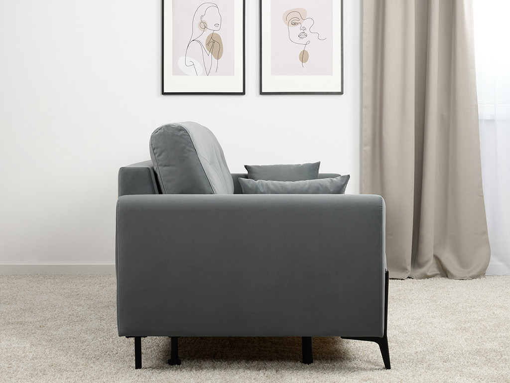 Декор: Металлические опоры плавно переходят в декоративный элемент подлокотника. Декоративная утяжка по приспинным подушкам