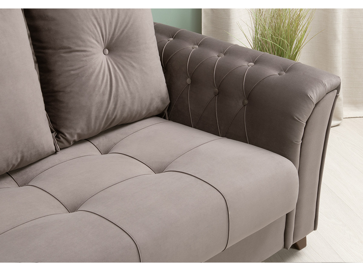 Декор: Декоративная отстрочка, защипы и утяжки на сиденье; защипы и утяжки с пуговицами на подлокотниках; утяжки с пуговицами на приспинных подушках