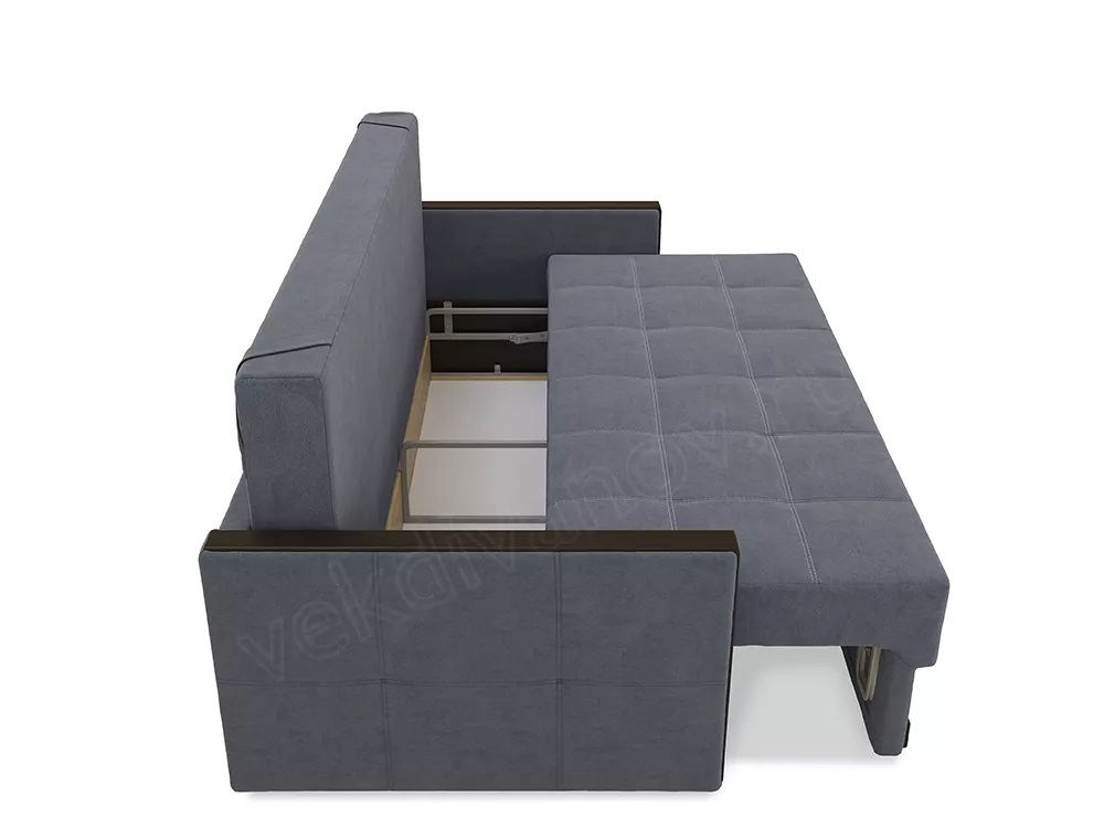 Наполнитель: в основании спального места независимый пружинный блок с дополнительным многослойным покрытием: термовойлок, высокоэластичный пенополиуретан, синтепон; подушки спинки имеют внутренний чехол, наполнитель комбинированный, гипоаллергенный пух «комфорель» с пенополиуретановой крошкой. Накладки – МДФ цвета венге.