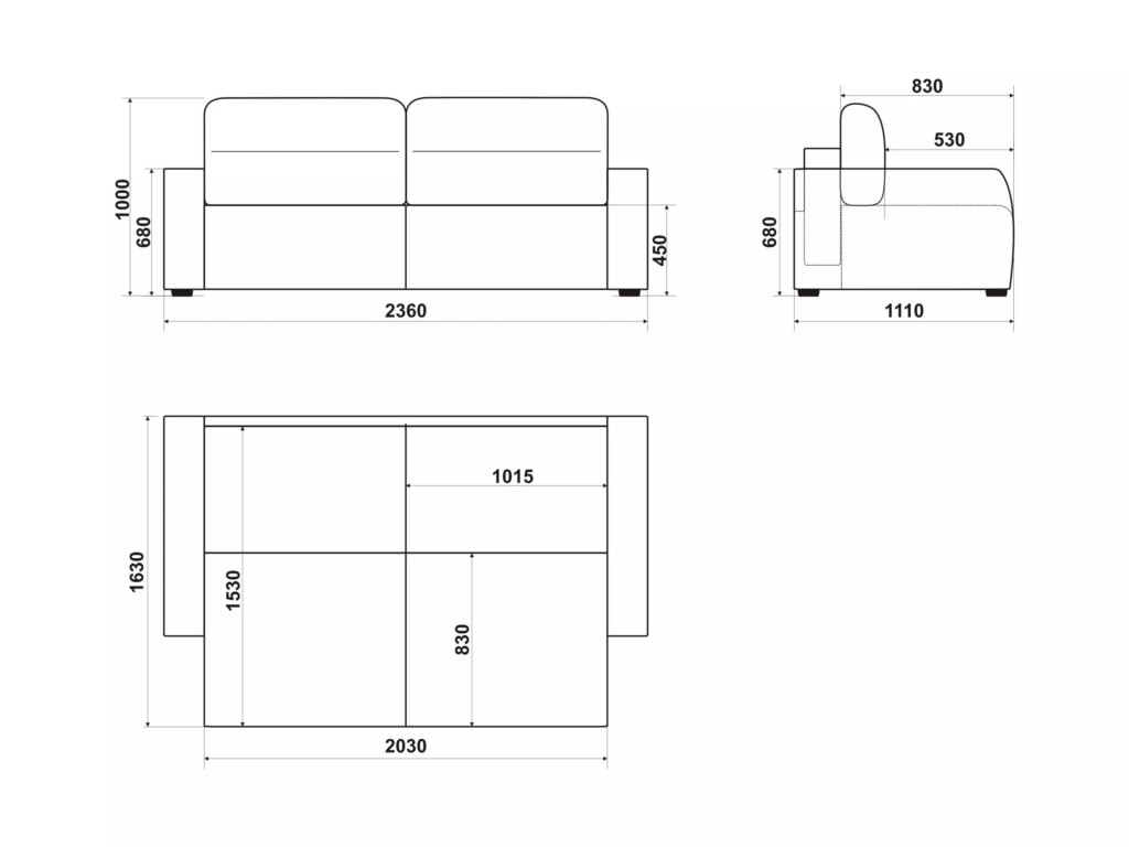 Размеры дивана (мм): 2360*1110*1000