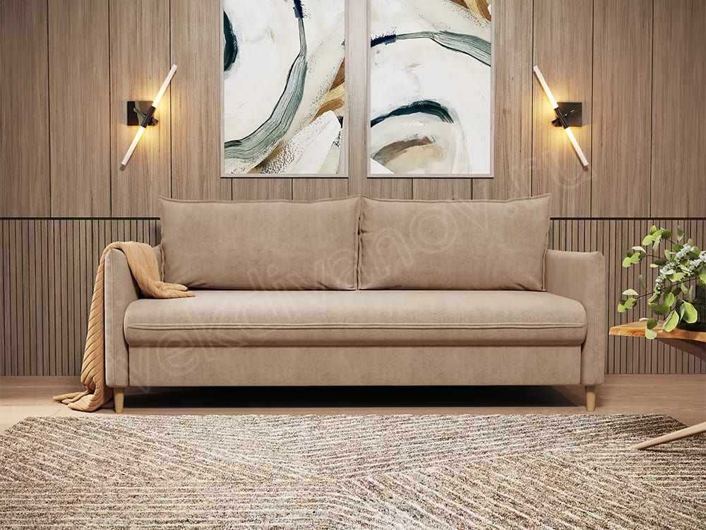 Каркас: выполнен из древесины хвойных пород, фанеры лиственных пород, лам. ДСП и лам. ДВП. В диване короб из ЛДСП. Опоры высота 120 мм.