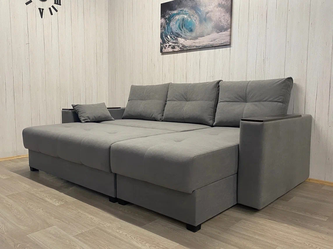 Декор: двойная строчка, утяжки. Три приспинные подушки и одна декоративная в комплекте.