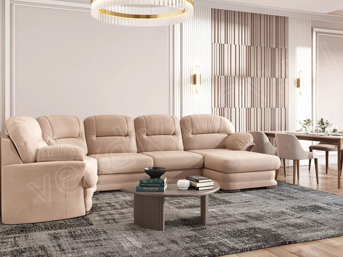 - Диван угловой большой П-образный Квин 6 Ultra Caramel