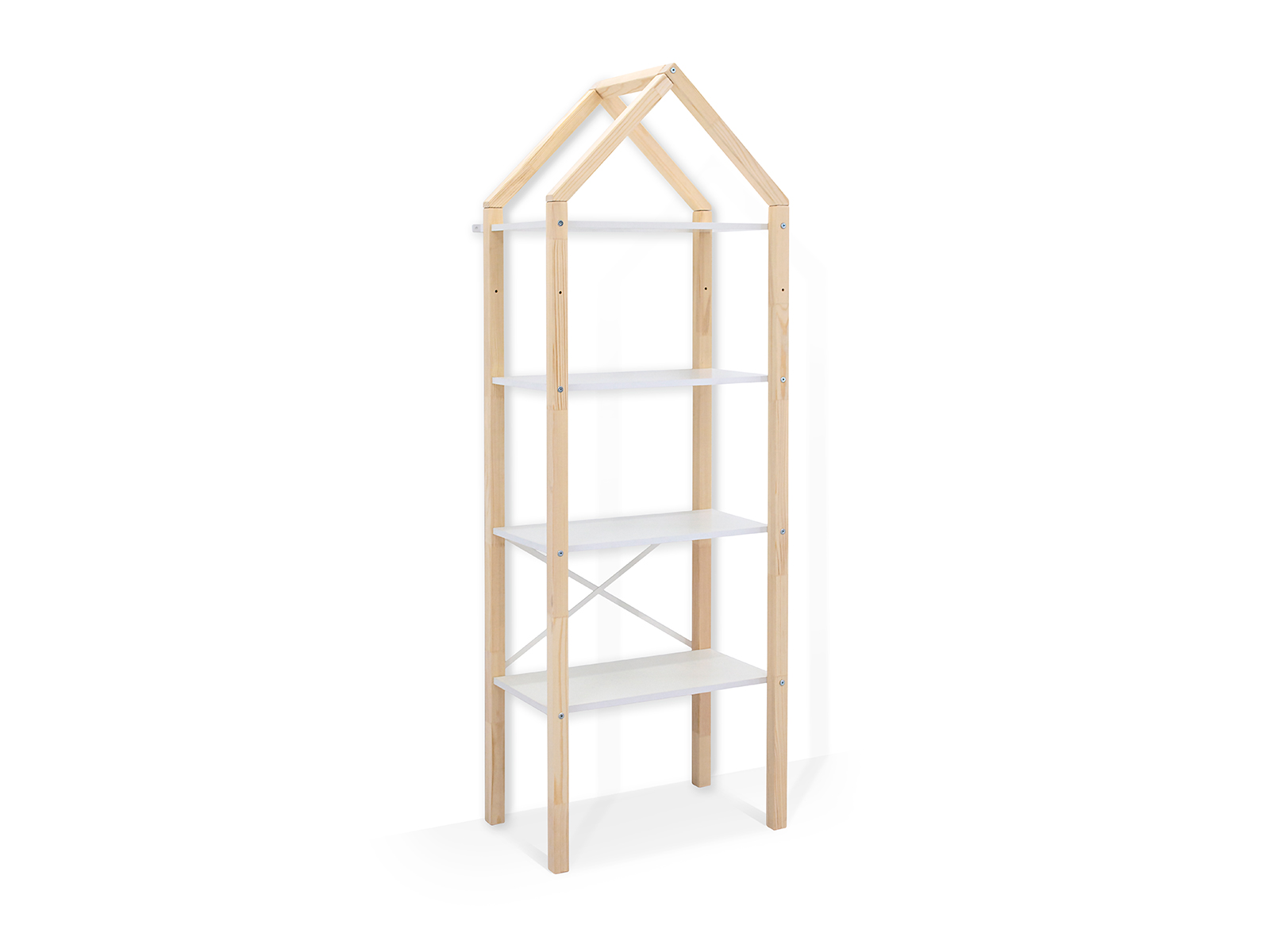Короб для хранения приобретается отдельно!Стеллаж стоит на 4ех ножках. Для устойчивости конструкцию детского стеллажа можно прикрепить к стене с помощью специального уголка, который идет в комплекте. Стеллаж сконструирован так, что его можно использовать в двух вариантах – с четырьмя полками или с вешалом и одной полкой. Все необходимое для двух вариантов сборки стеллажа идет в комплекте. Крышу домика при желании можно снять.