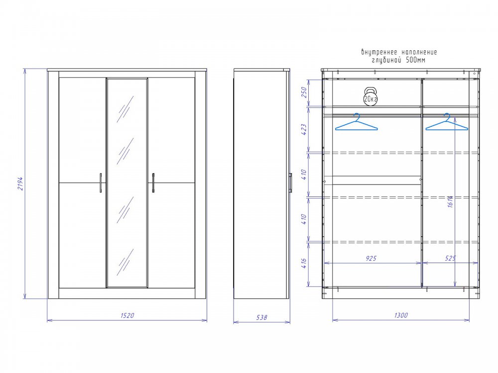 Размер ШхГхВ: 1520*538*2194 мм
