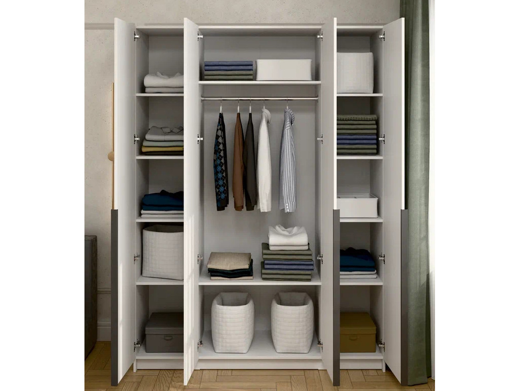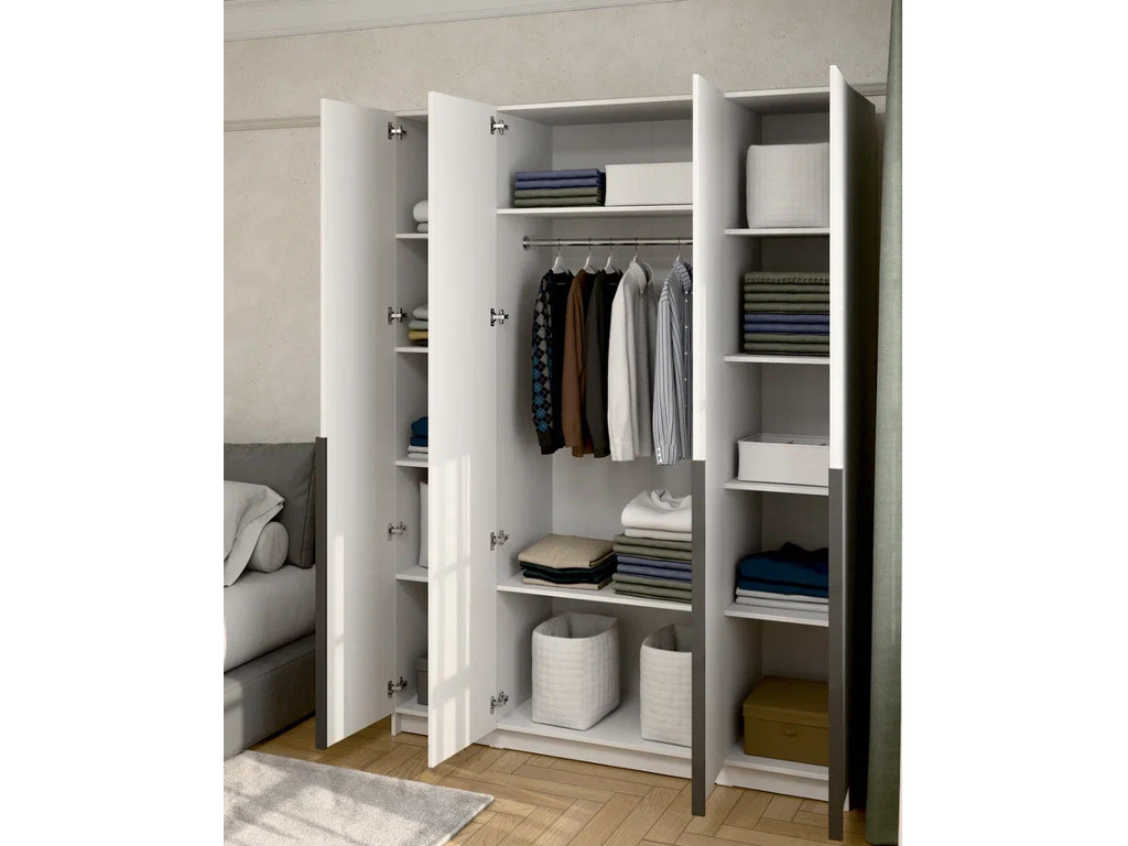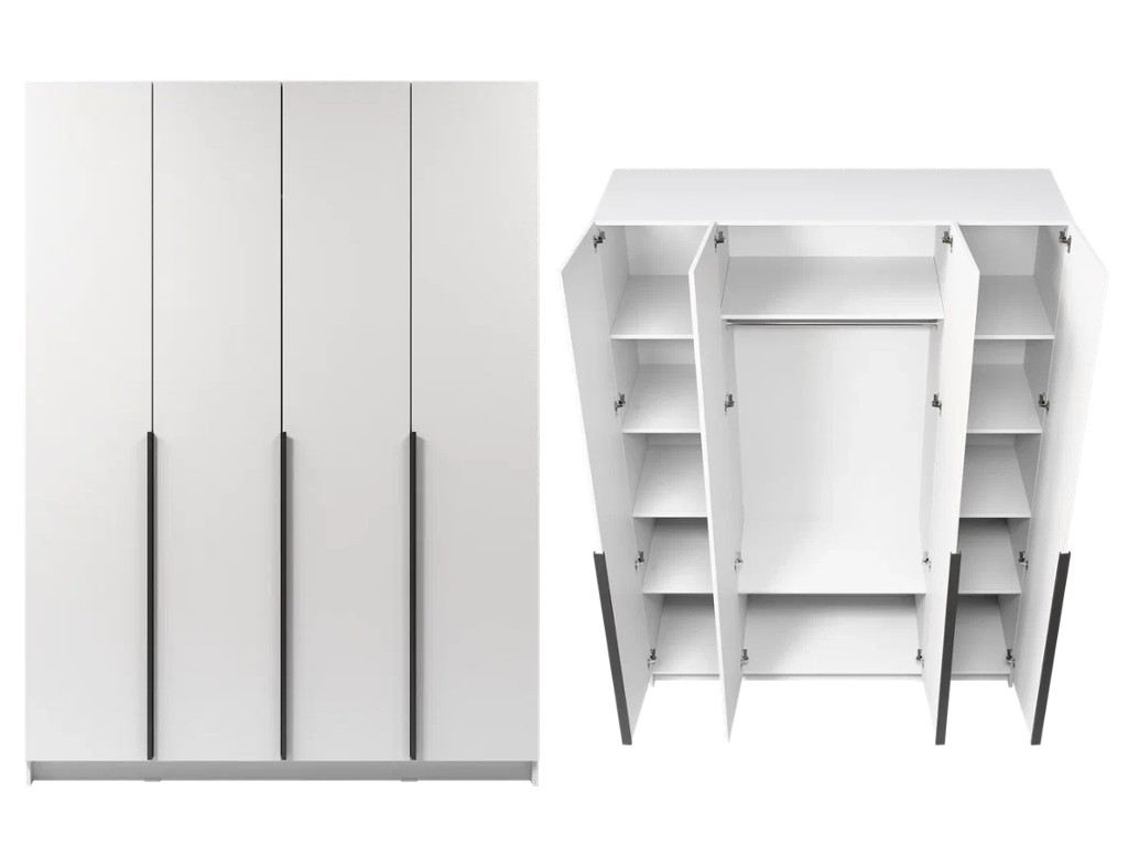 - Шкаф 4-хстворчатый с доводчиками Лион белый