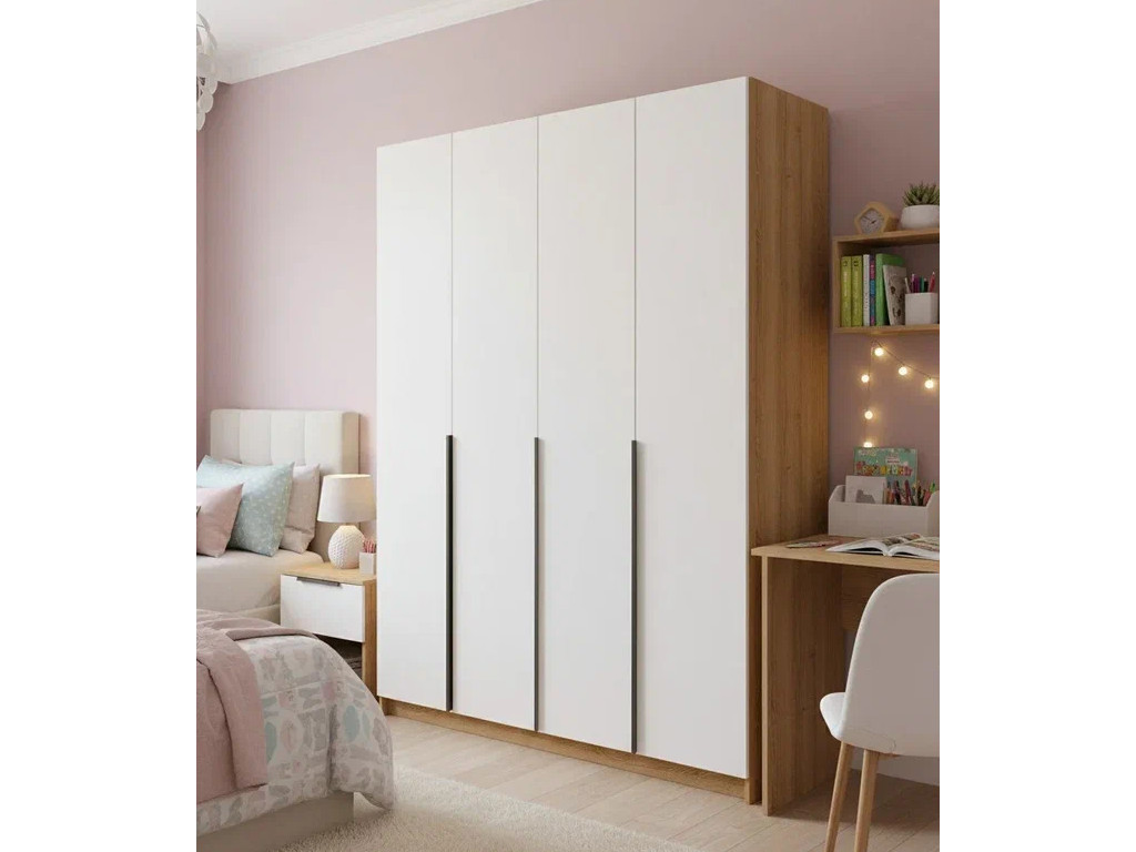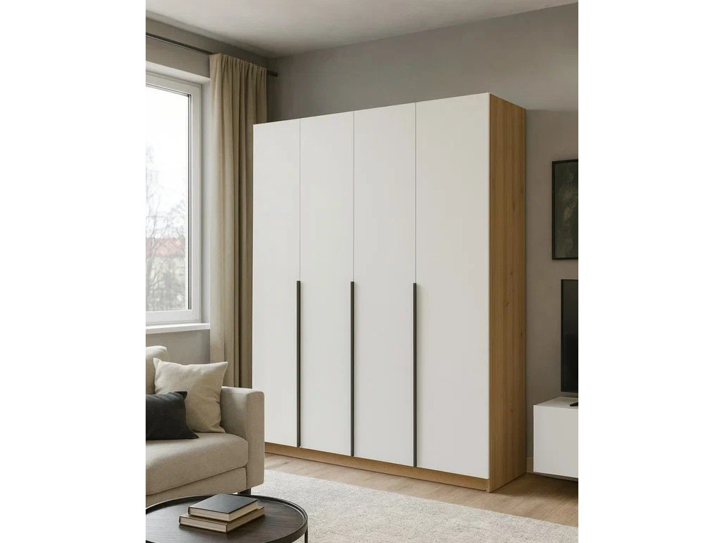- Шкаф 4-хстворчатый с доводчиками Лион сонома/белый