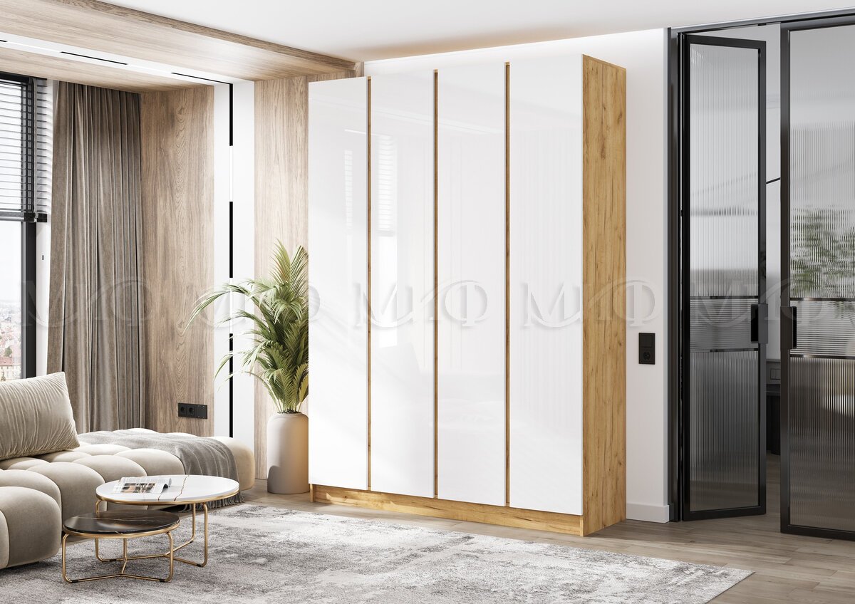 Шкаф четырехстворчатый Келвин (1600) Белый Глянец, Дуб Крафт-вставка дуб крафт