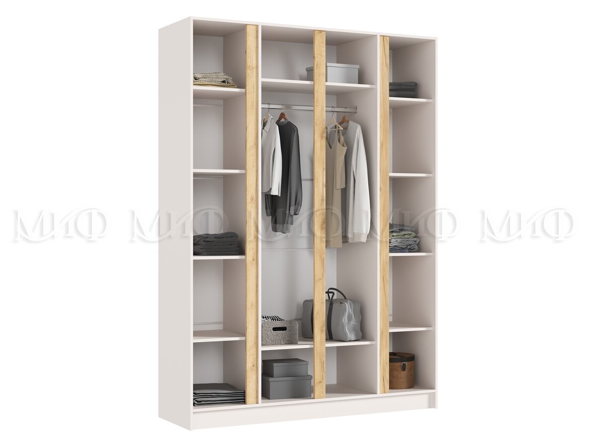 - Шкаф четырехстворчатый Келвин (1600) Кашемир-вставка дуб крафт