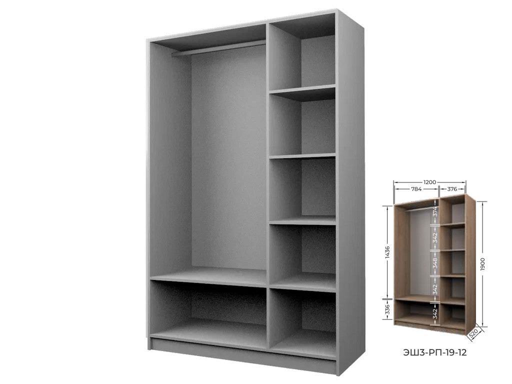 Комплект: ЭШ3-РП-19-12, Шкаф для Одежды + три ЗС-19,Зеркало для шкафов ЭШ 1900 мм
