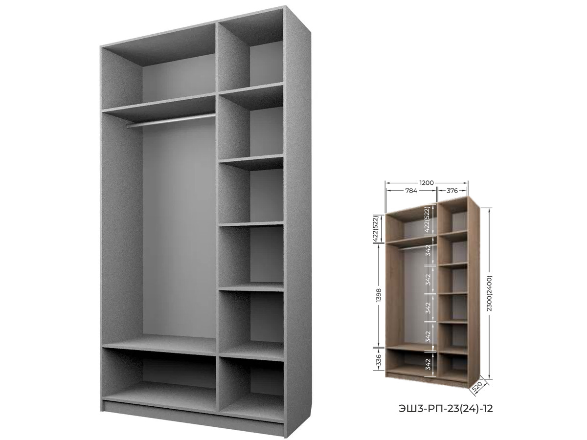 Комплект: ЭШ3-РП-24-12, Шкаф для Одежды + ЗС-24,Зеркало для шкафов ЭШ 2400 мм
