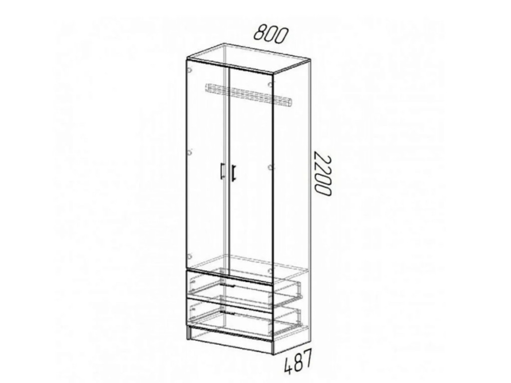 Размер: 800(Ш) Х 2200(В) Х 487(Г) мм