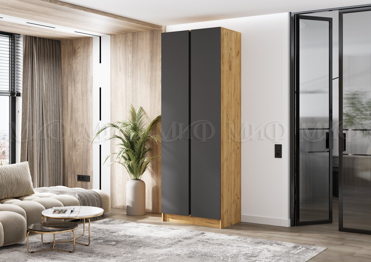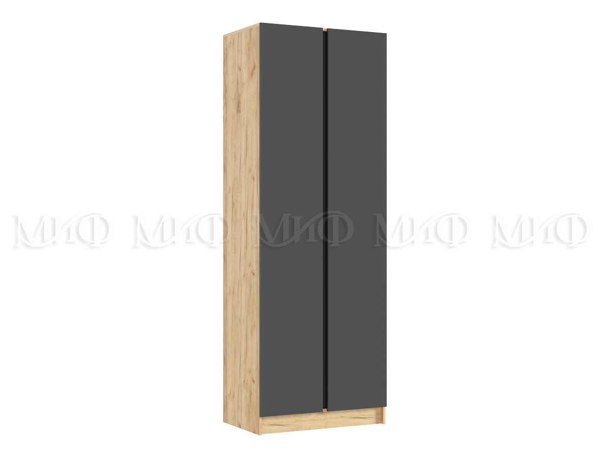 - Шкаф двухстворчатый Келвин (800) Графит, Дуб Крафт-вставка черная