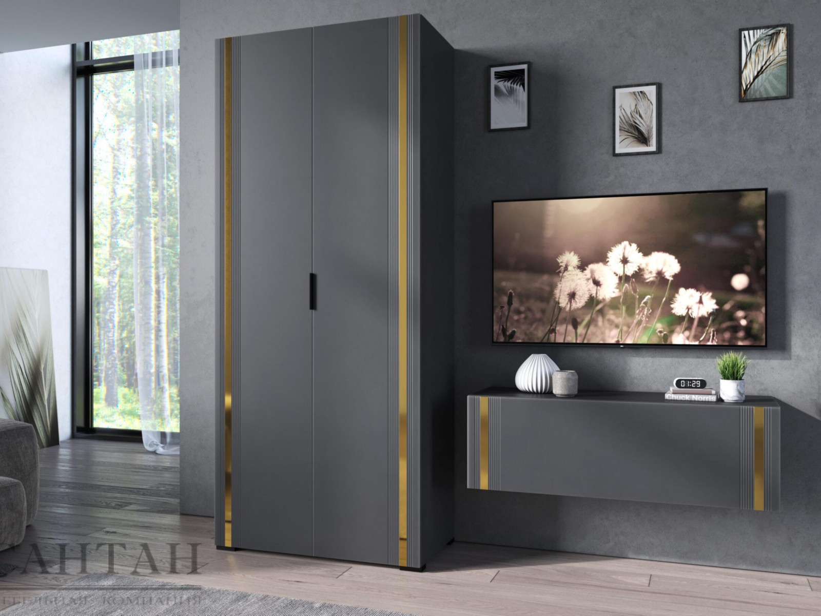 - Фасады из МДФ с оригинальной фрезеровкой покрыты суперматовой пленкой с эффектом Soft Touch в цветах Графит и Milk.