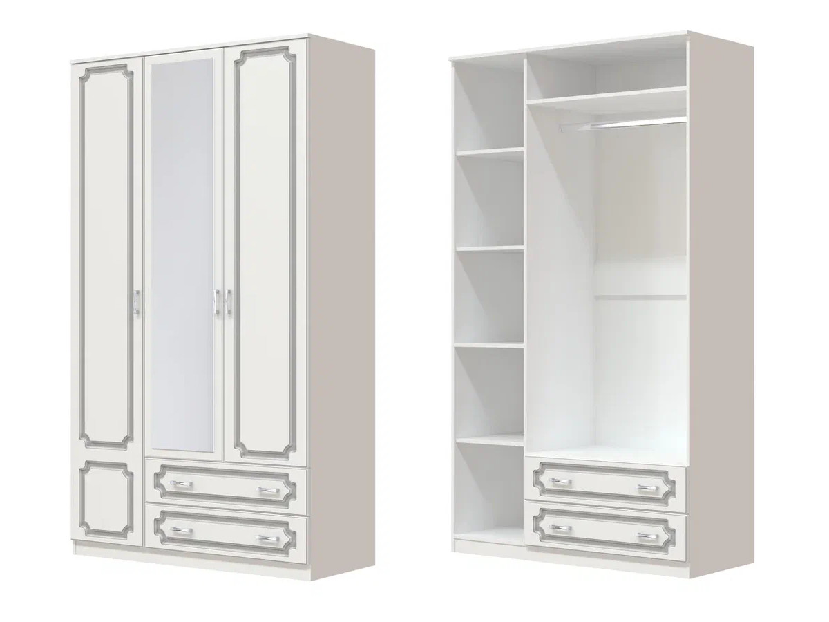 - Шкаф ШР-3 платье и бельё с зеркалом Лак Белый жемчуг