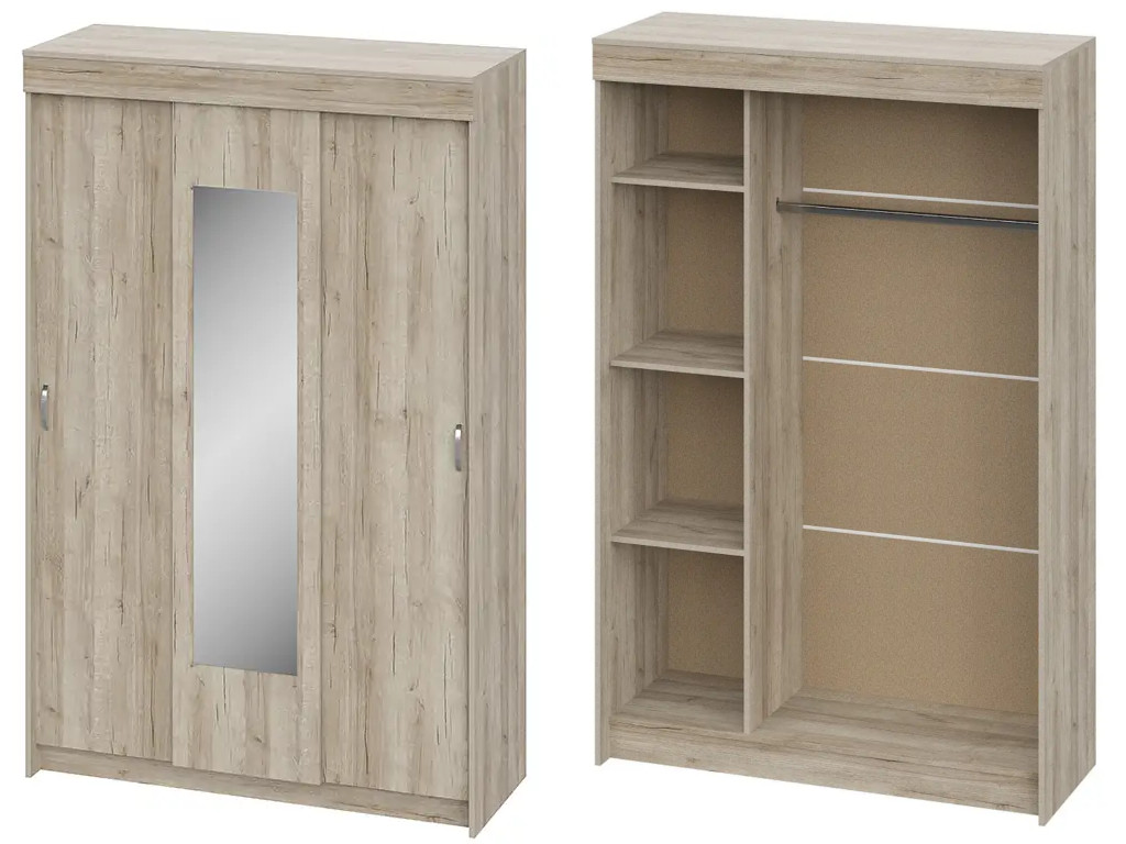 - Шкаф-купе 3-х створчатый Бассо дуб крафт серый