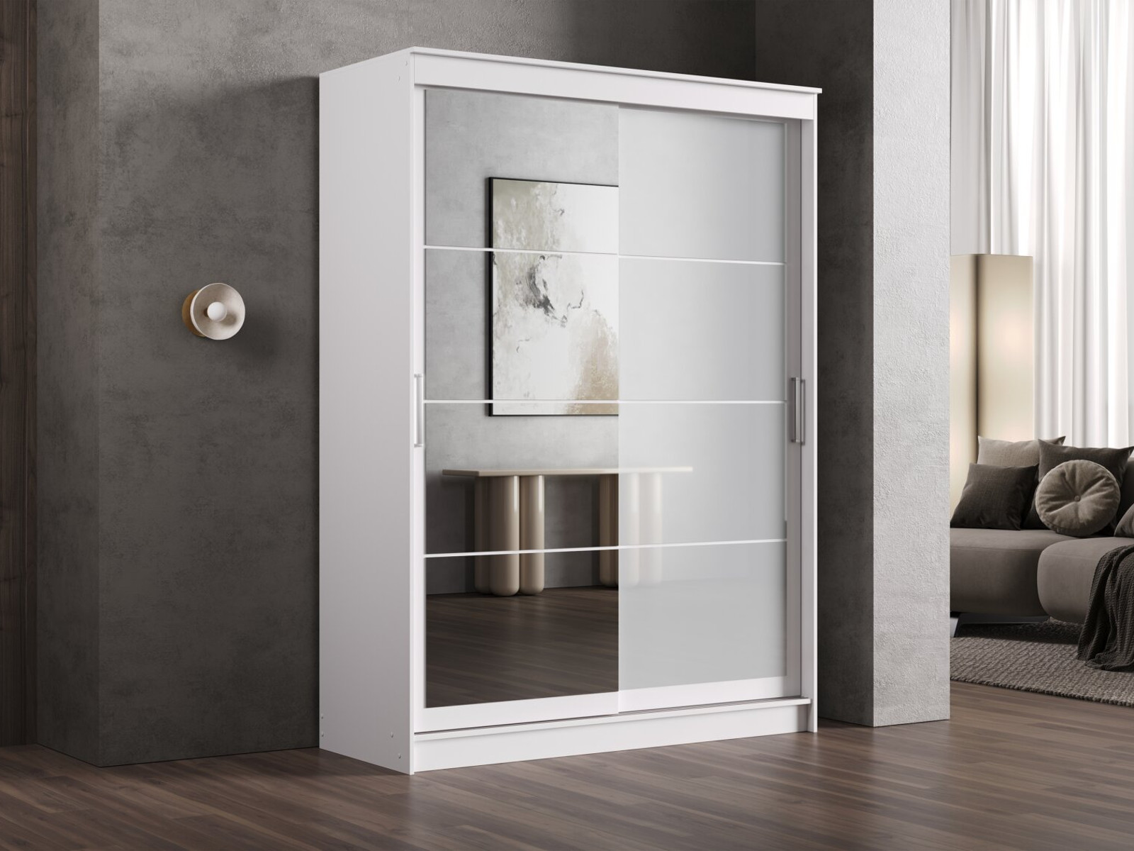- Шкаф-купе Гранд-1 1600 Белый гладкий-двери Зеркало-Лакобель белый