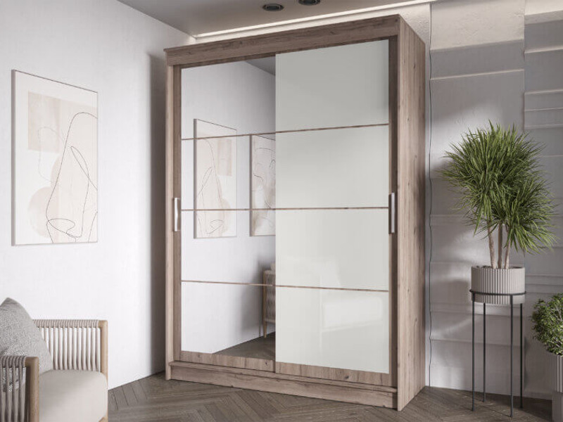 Шкаф-купе Гранд-1 1600 Дуб Горный-двери Зеркало-Лакобель белый