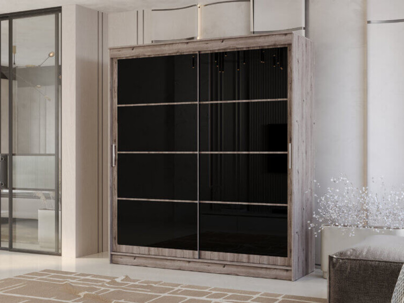 - Шкаф-купе Гранд-1 2000 Дуб Горный-двери Лакобель черный