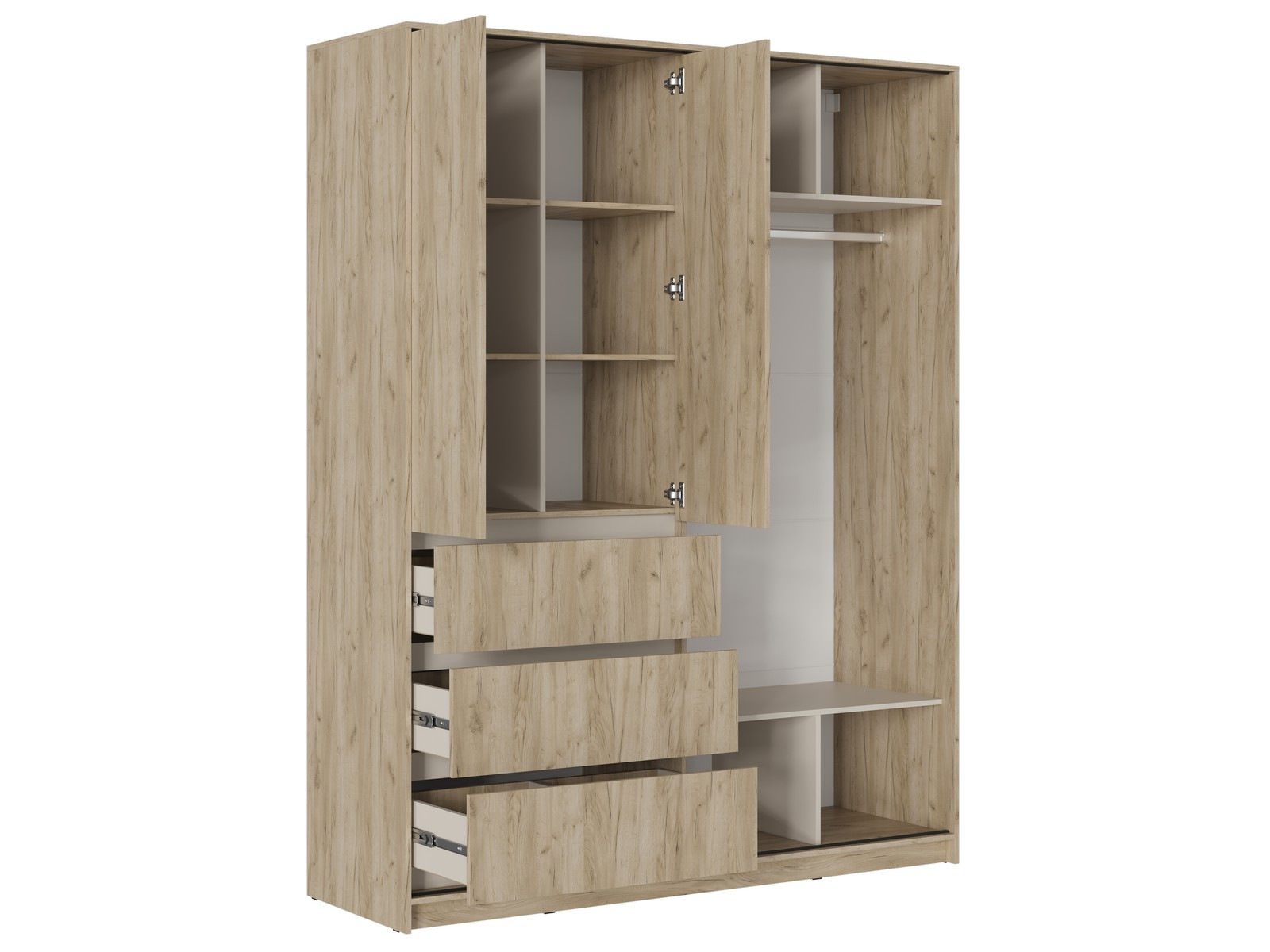 Снизу отделения расположен отсек с тремя ящиками. Внутренние габариты ящика Д.819 х В.170