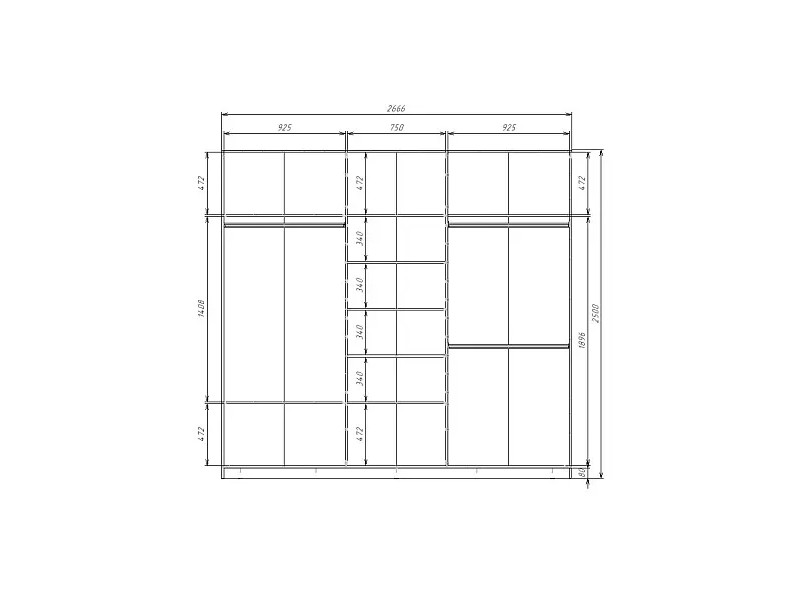 - 3 двери верхняя и нижняя вставка – Зеркало, центральная – ДСП 10 мм.