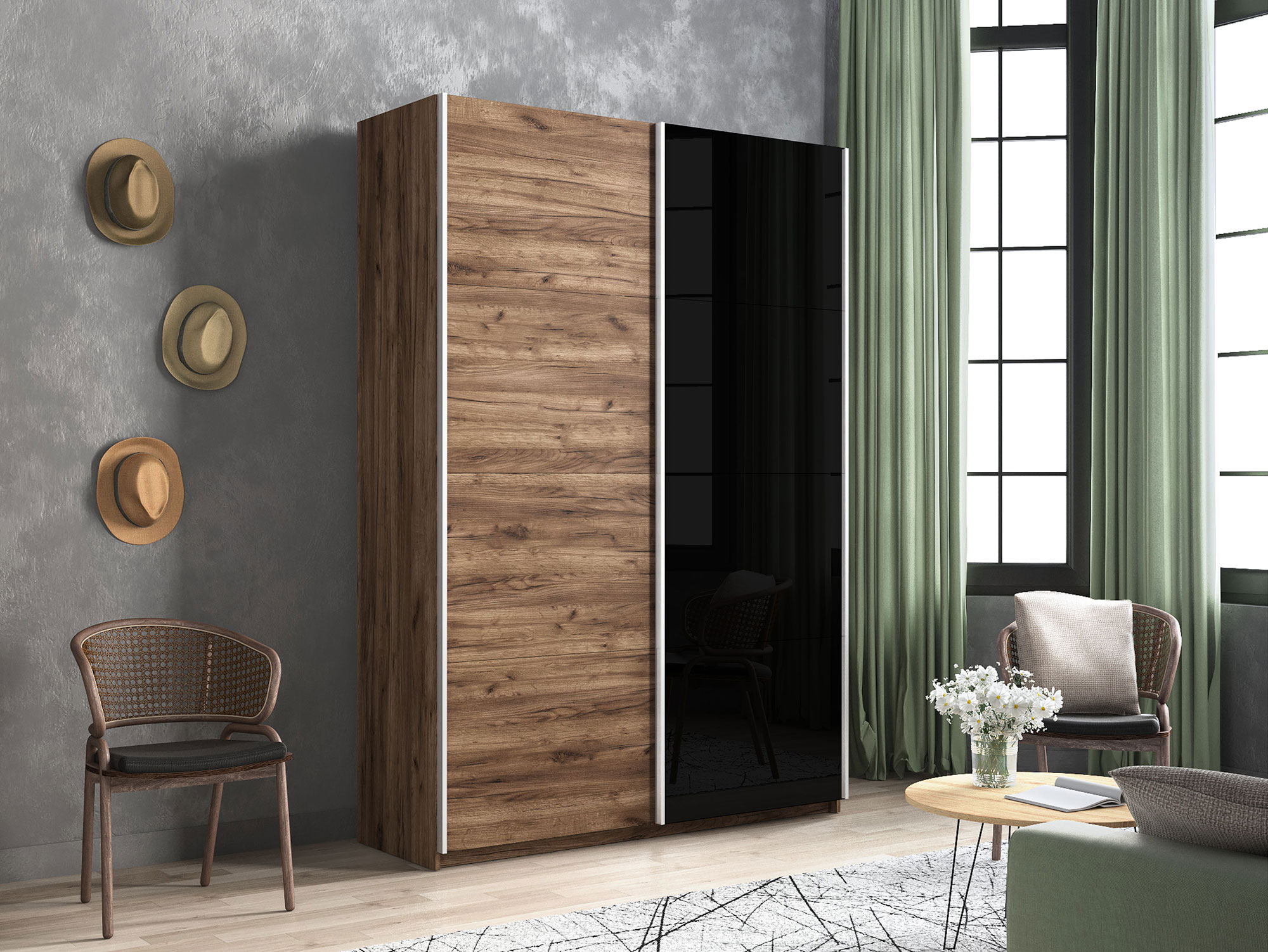 - Шкаф-купе Прайм 2-х дверный 1200 ДСП/Стекло Черное Крафт табачный
