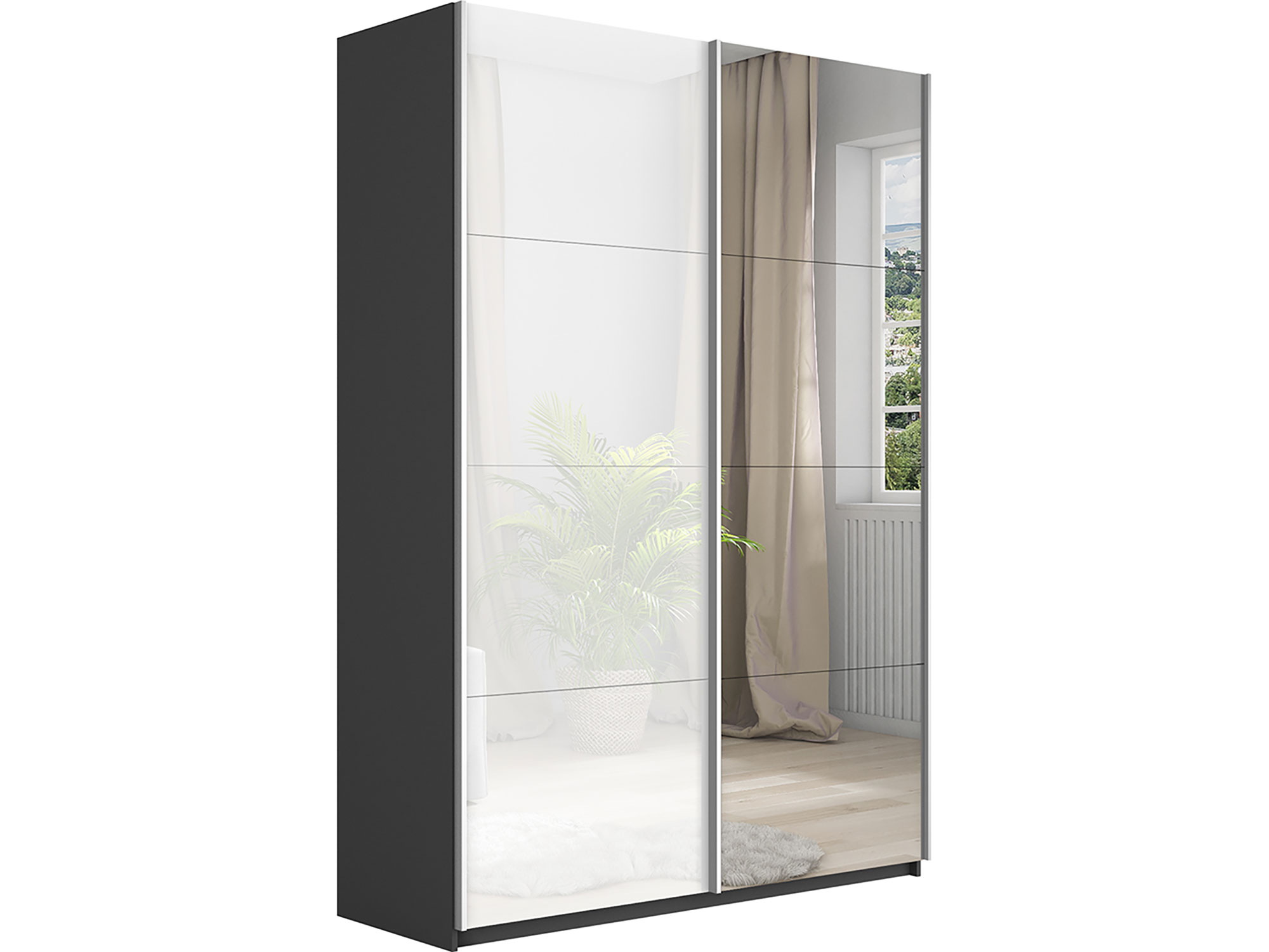 - Шкаф-купе Прайм 2-х дверный 1200 Зеркало/Стекло Белое Серый Диамант