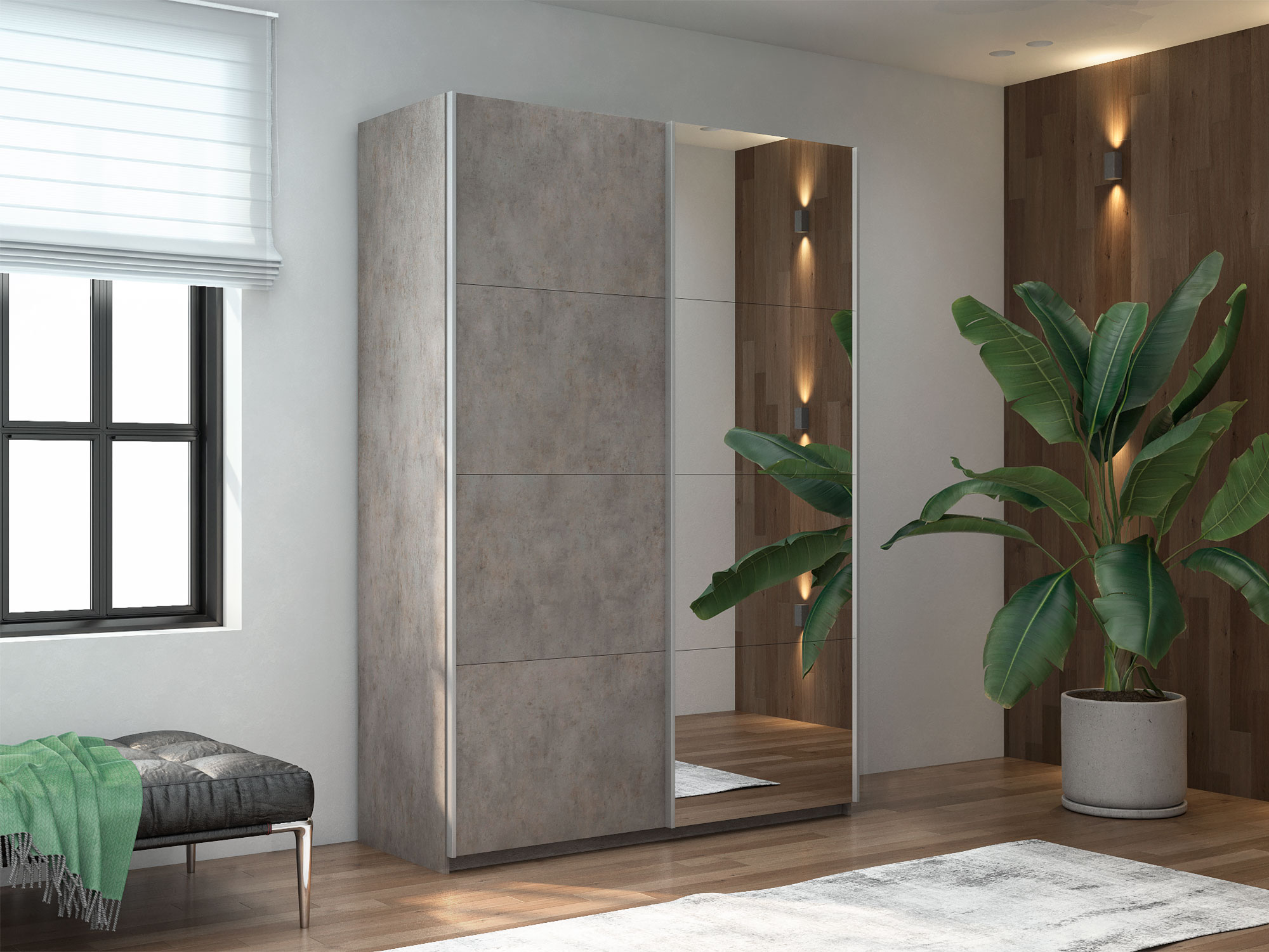 - Шкаф-купе Прайм 2-х дверный 1400 Зеркало/ДСП Бетон