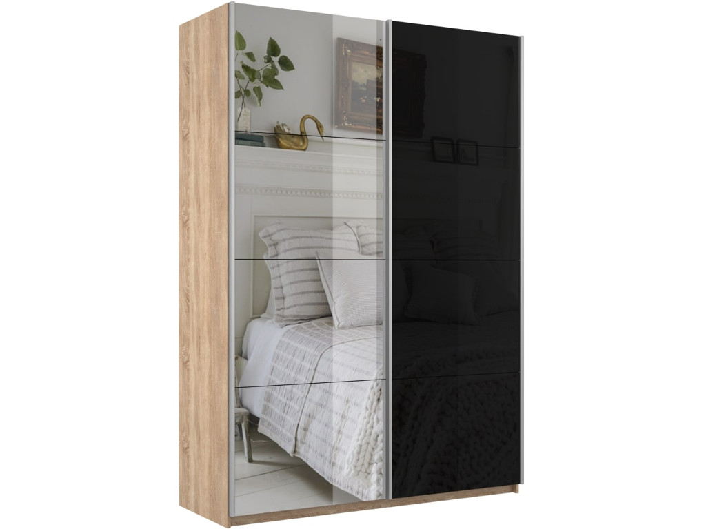 - Шкаф-купе Прайм 2-х дверный 1400 Зеркало/Стекло Черное Сонома