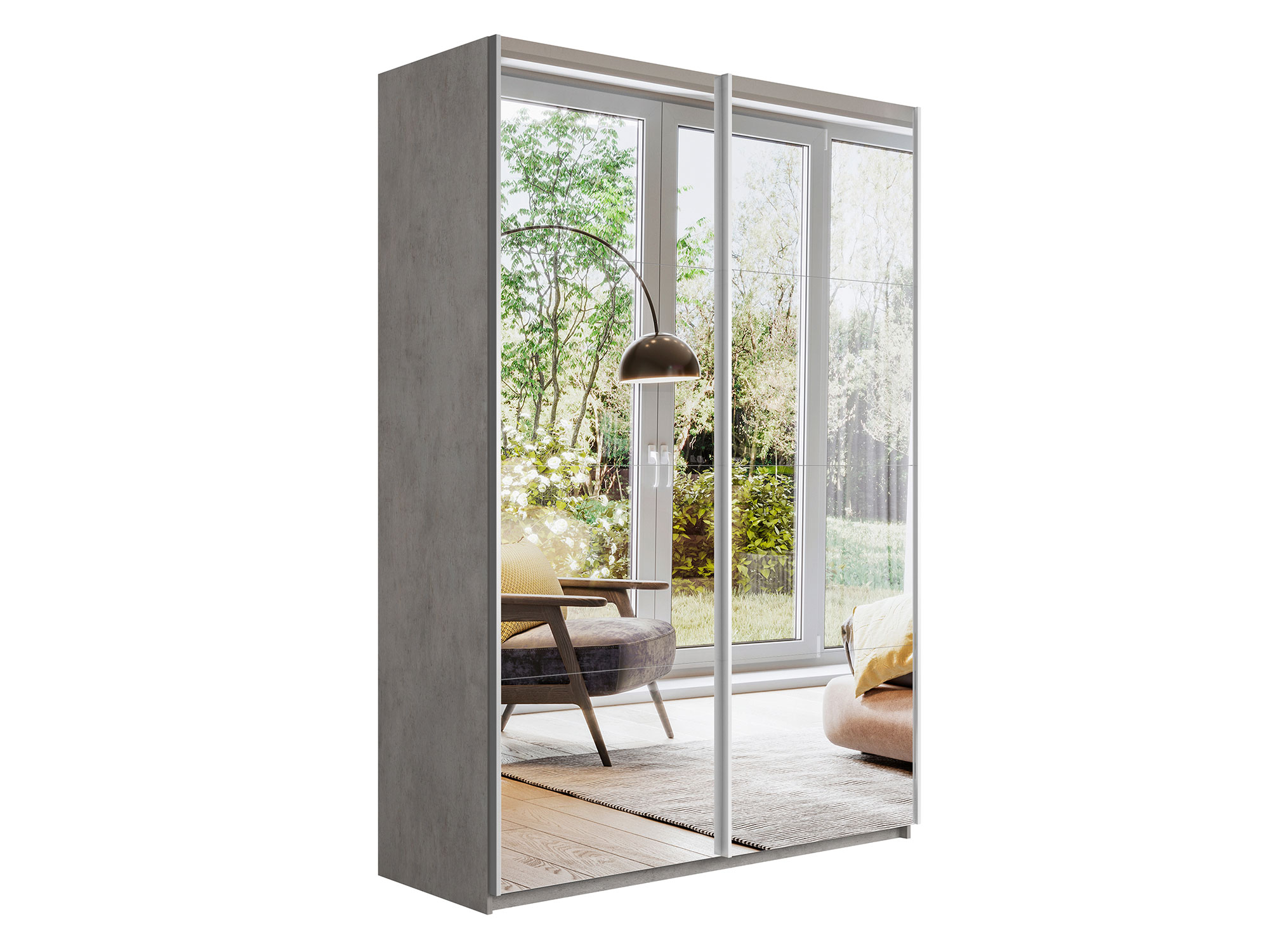 - Шкаф-купе Прайм 2-х дверный 1600 два зеркала Бетон