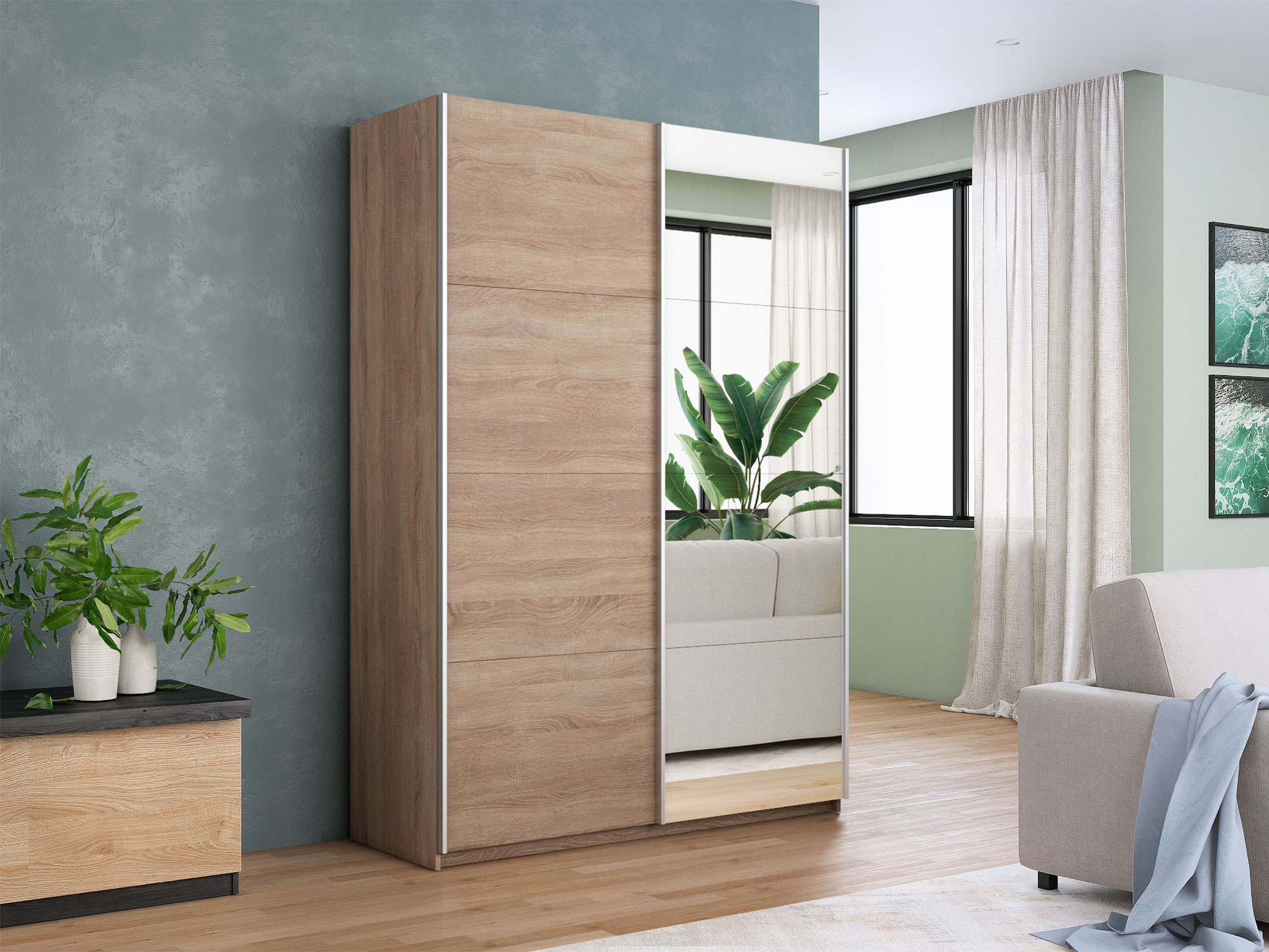 Шкаф-купе Прайм 2-х дверный 1600 Зеркало/ДСП Сонома