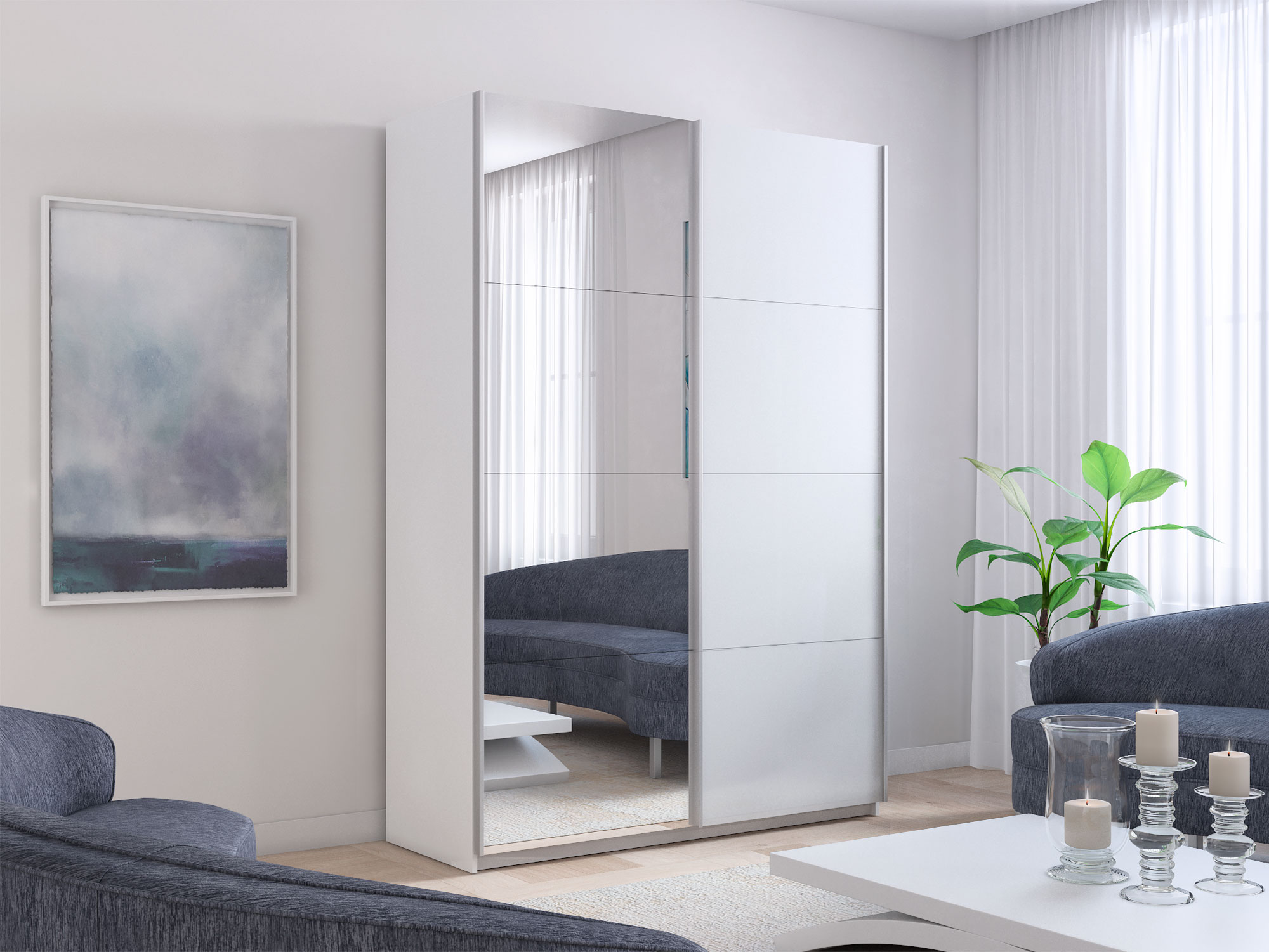 Шкаф-купе Прайм 2-х дверный 1600 Зеркало/Стекло Белое Белый Снег
