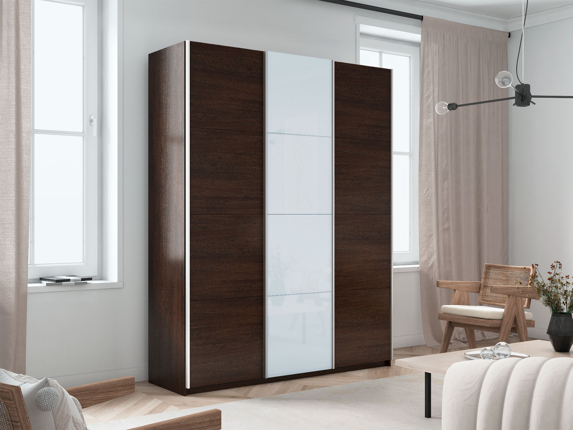 Шкаф-купе Прайм 3-х дверный 1800 ДСП/Стекло Белое/ДСП Венге